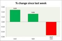 Dollar index trading at 95.67 (-0.13%) Strength meter (today so far) Aussie +0.24%, Kiwi +0.16%, Loonie -0.27% Strength meter (since last week) Aussie +0.24%, Kiwi +0.16%, Loonie -0.27% AUD/USD Trading at...