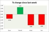 Dollar index trading at 95.42 (+0.14%) Strength meter (today so far) Euro +0.04%, Franc -0.12%, Yen -0.56%, GBP -0.44% Strength meter (since last week) Euro -0.76%, Franc -1.87%, Yen -1.81%, GBP +1.21% EUR/USD...