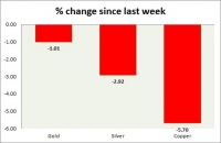 Metal pack is down today. Performance this week at a glance in chart table - Gold Gold trying to gain back some ground ahead of NFP Todays range $1282-1274 Gold is currently trading at $1279/troy...