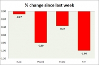 Dollar index trading at 93.53 (+0.33%) Strength meter (today so far) Euro -0.48%, Franc -0.54%, Yen -0.34%, GBP -0.15% Strength meter (since last week) Euro -0.07%, Franc -0.37%, Yen -1.00%, GBP +0.80% EUR/USD...