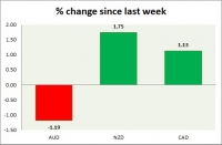Dollar index trading at 93.18 (-0.66%) Strength meter (today so far) Aussie -0.28%, Kiwi +0.17%, Loonie +0.23% Strength meter (since last week) Aussie -1.19%, Kiwi +1.75%, Loonie +1.13% AUD/USD Trading at...
