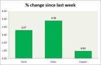 Metal pack is up today. Performance this week at a glance in chart table - Gold Gold rose sharply today on weaker Dollar, back testing $1285 resistance area. Todays range $1281-1264 Gold is currently...
