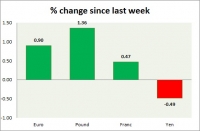 Dollar index trading at 93.96 (-0.18%) Strength meter (today so far) Euro +0.07%, Franc +0.06%, Yen -0.00%, GBP +0.02% Strength meter (since last week) Euro +0.90%, Franc +0.47%, Yen -0.49%, GBP +1.36% EUR/USD...