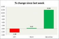 Energy pack is up in todays trading. Weekly performance at a glance in chart table. Oil (WTI) WTI is up on weaker Dollar, despite high increase in inventory. Todays range $37.5-38.7 Sell WTI...