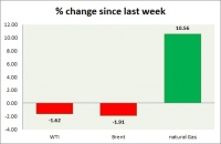 Energy pack is up in todays trading. Weekly performance at a glance in chart table. Oil (WTI) WTI is up after five down days on weaker Dollar, focus on EIA report later in the evening. Todays range...
