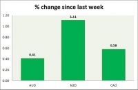 Dollar index trading at 95.86 (-0.08%) Strength meter (today so far) Aussie -0.29%, Kiwi +0.25%, Loonie -0.01% Strength meter (since last week) Aussie +0.41%, Kiwi +1.11%, Loonie +0.45% AUD/USD Trading at...