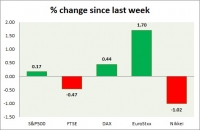 Equities are all green in todays trading. Kindly note all instruments mentioned here are CFDs, whose values might differ from cash or future traded. Performance this week at a glance in chart table - SP 500 - SP 500,...