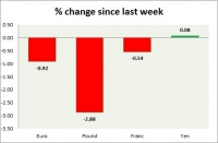 Dollar index trading at 97.39 (-0.05%). Strength meter (today so far) - Euro +0.01%, Franc -0.14%, Yen +0.20%, GBP +0.13% Strength meter (since last week) - Euro -0.92%, Franc -0.54%, Yen -0.31%, GBP -2.88% EUR/USD...