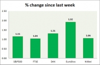 Equities are all green in todays trading. Kindly note all instruments mentioned here are CFDs, whose values might differ from cash or future traded. Performance this week at a glance in chart table - SP 500 - SP 500,...