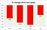 Dollar index trading at 96.82 (-0.07%). Strength meter (today so far) - Euro +0.02%, Franc -0.22%, Yen +0.07%, GBP +0.02% Strength meter (since last week) - Euro -0.96%, Franc -1.44%, Yen -0.72%, GBP -1.28% EUR/USD...