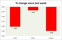 Metal pack is mixed today. Performance this week at a glance in chart table - Gold - Gold is down as risk aversion fades and strong Dollar. Todays range $1079-1088 Gold is currently trading at $1082/troy ounce....