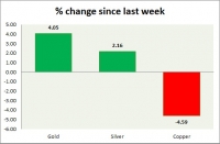 Metal pack is mixed today, silver and copper is down, while gold is up. Performance this week at a glance in chart table - Gold - Gold has broken above $1100 resistance area, further rise likely. Todays range...