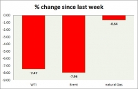 Energy pack is red today. Weekly performance at a glance in chart table. Oil (WTI) - WTI is sharply down today. Saudi-Iran tension means supply glut to stay in 2016, at least from unless greater turmoil takes place....