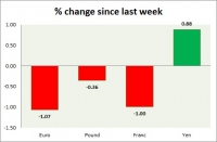 Dollar index trading at 99.3 (+0.46%). Strength meter (today so far) - Euro -0.70%, Franc -0.67%, Yen +0.32%, GBP -0.22% Strength meter (since last week) - Euro -1.07%, Franc -1.00%, Yen +0.88%, GBP -0.36% EUR/USD...
