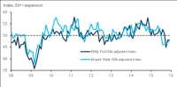 The Philly Fed manufacturing index fell to -5.9 in the December reading, down from 1.9 last month and well below forecast (2.0) and consensus (1.0) expectations. Similar to the Empire State survey, new orders contracted...