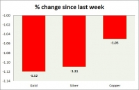 Metal pack is mixed today, precious is down, industrial is up. Performance this week at a glance in chart table - Gold - Gold is down today, heading into FOMC, a drop towards $1046 is possible. Todays range...