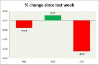 Dollar index trading at 97.71 (+0.33%) Strength meter (today so far) - Aussie +1.06%, Kiwi +0.14%, Loonie +0.02%. Strength meter (since last week) - Aussie -0.38%, Kiwi +0.27%, Loonie -1.63%. AUD/USD - Trading at...