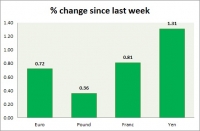 Dollar index trading at 97.70 (+0.30%). Strength meter (today so far) - Euro -0.55%, Franc -0.42%, Yen +0.18%, GBP -0.15% Strength meter (since last week) - Euro +0.48%, Franc +0.40%, Yen +0.42%, GBP -0.18% EUR/USD...