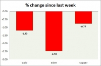 Metal pack is almost flat today. Performance this week at a glance in chart table - Gold - Gold is almost flat today, trading range is getting squeezed, breakout possibility ahead. Todays range $1076-1071 Gold is...