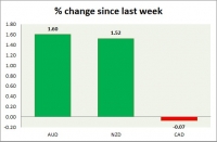 Dollar index trading at 100.32 (+0.48%) Strength meter (today so far) - Aussie +0.01%, Kiwi -0.25%, Loonie -0.23%. Strength meter (since last week) - Aussie +1.60%, Kiwi +1.52%, Loonie -0.07%. AUD/USD - Trading at...