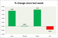 Dollar index trading at 98.75 (-1.26%). Strength meter (today so far) - Euro +1.89%, Franc 1.30%, Yen -0.07%, GBP +0.57% Strength meter (since last week) - Euro +1.96%, Franc +2.11%, Yen -0.41%, GBP +0.05% EUR/USD...