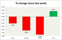 Dollar index trading at 99.75 (-0.01%). Strength meter (today so far) - Euro -0.03%, Franc -0.13%, Yen +0.12%, GBP -0.03% Strength meter (since last week) - Euro -0.21%, Franc -0.56%, Yen +0.17%, GBP -0.43% EUR/USD...