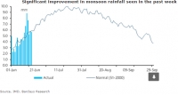 The south-west monsoons showed dramatic progress in the last week, with improvements in quantity and geographic distribution of rainfall. Cumulatively, rainfall conditions have moved into a small surplus, with the total...