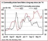 Commodity prices are extremely low relative to a few years ago and this will continue to weigh negatively on the AUD and NZD in the months to come. The chart shows the commodity indices of both the RBA and ANZ, indexed to...