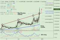 Lisk/USD has shown a decisive breakout at major trendline resistance at 13.95 levels. Next bull target 21.68 (238.2% Fib extension of 12.21 to 5.36 fall). Technicals support rise higher: - Bollinger bands...