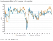 Australias business conditions fell sharply in December and now sit below their long-term average for the first time since January 2016. The month-to-month drop was the largest since the Global Financial Crisis (GFC). The...