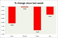 Dollar index trading at 99.51 (-0.16%). Strength meter (today so far) - Euro +0.25%, Franc -0.23%, Yen +0.01%, GBP -0.01% Strength meter (since last week) - Euro -0.85%, Franc -1.20%, Yen -0.41%, GBP -0.03% EUR/USD...
