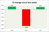 Dollar index trading at 99.44 (+0.06%) Strength meter (today so far) - Aussie +0.45%, Kiwi -0.13%, Loonie +0.18%. Strength meter (since last week) - Aussie +0.14%, Kiwi -0.86%, Loonie +0.11%. AUD/USD - Trading at...