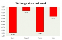 Dollar index trading at 99.53 (+0.14%). Strength meter (today so far) - Euro -0.18%, Franc -0.43%, Yen -0.04%, GBP -0.05% Strength meter (since last week) - Euro -0.89%, Franc -0.86%, Yen -0.33%, GBP -0.13% EUR/USD...