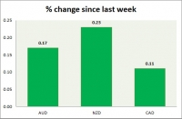 Dollar index trading at 99.03 (-0.15%) Strength meter (today so far) - Aussie +0.17%, Kiwi +0.23%, Loonie +0.11%. Strength meter (since last week) - Aussie +0.17%, Kiwi +0.23%, Loonie +0.11%. AUD/USD Trading at...