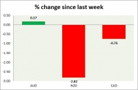 Dollar index trading at 97.92 (+0.75%) Strength meter (today so far) - Aussie -0.65%, Kiwi -1.25%, Loonie -0.80%. Strength meter (since last week) - Aussie +0.17%, Kiwi -2.82%, Loonie -0.76%. AUD/USD - Trading at...