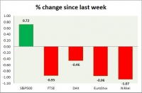 Equities are all trading in red today. Kindly note all instruments mentioned here are CFDs, whose values might differ from cash or future traded. Performance this week at a glance in chart table - SP 500 - SP 500 is...