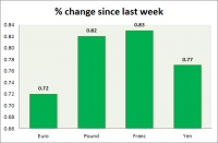 Dollar index trading at 94.27 (-0.52%). Strength meter (today so far) - Euro +0.46%, Franc +0.60%, Yen +0.41%, GBP +1.17% Strength meter (since last week) - Euro +0.72%, Franc +0.83%, Yen +0.77%, GBP +0.82% EUR/USD...