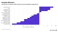 Latest analysis from Bloomberg shows that traders and investors in latest financial market turmoil are preferring to perk their money to surplus currencies. The chart shows, in past month alone Japanese Yen, a...