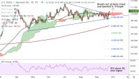 USD/JPY chart - Trading View Technical Analysis: Bias Bullish - USD/JPY closes above Symmetric Triangle top and daily cloud - Momentum is bullish, Stochs and RSI are biased higher - Volatility is high and...