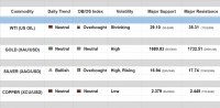 Daily Commodity Tracker WTI (US OIL): Daily trend - Neutral, with a bearish bias Previous Week High/Low: 34.64/ 29.59 Previous Day High/Low: 34.30/ 31.80 GOLD (XAU/USD): Daily trend - Neutral, with a...