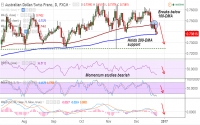 FxWirePro: AUD/CHF holds 200-DMA support at 0.7375, bias lower, stay short