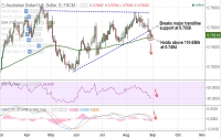 AUD/USD downside finds strong support by 110-EMA at 0.7494. Momentum studies are bearish, break below 0.7494 targets 0.7420. Daily price action has dipped into daily cloud. Recovery attempts were weak, pair...