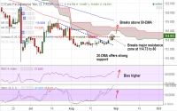EUR/JPY has shown a clear breakout above 50-DMA. The pair has also broken above major resistance zone at 114.73-80. Momentum studies are bullish, Stochs and RSI are biased higher. Major support levels -...