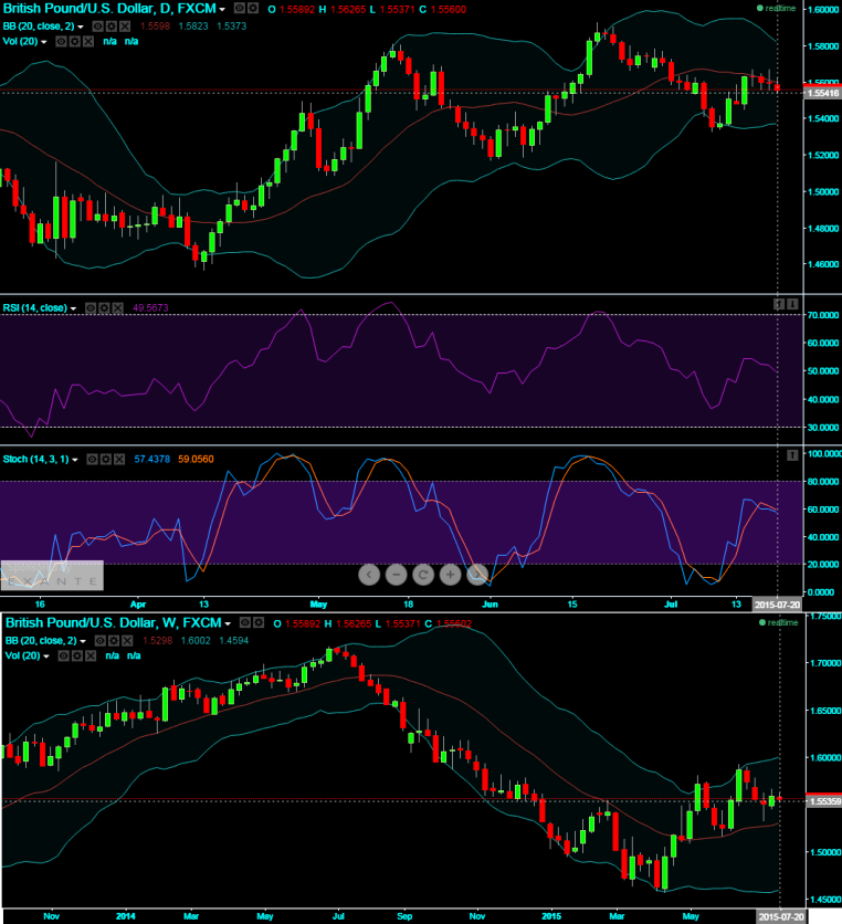 On EOD charts, flurry of dark candles formed after a streak of bearish swings experienced last month. It is now traced 2 Doji's occurred back again one at 1.5631 and another one at 1.5596 levels to confirm the previous bearish trend.