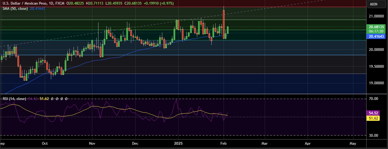 • USD/MXN firmed on Wednesday, on relief after U.S. President Donald Trump temporarily suspended tariffs on Mexico and Canada. • Trump lifted tariffs on Mexico and Canada for 30 days after the countries reached border security agreements. • Trump's tari