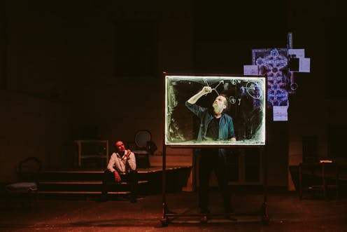 This constructed world is populated by engaging, movable set-pieces (the illuminated, transparent “blackboards” were a highlight) and beautifully costumed actors, courtesy of Karla Urizar’s work as production and costume designer as well as the State Theatre Company’s workshop and wardrobe.