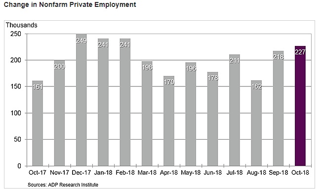 - Non-farm private sector employment grew at 227,000 in October. In September payroll grew by 2183,000.