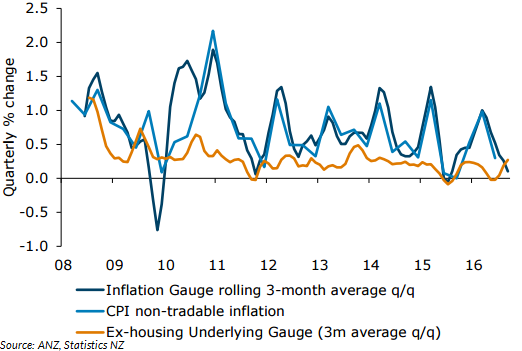 Even though there are pockets of prices rising, on a whole, there is not much evidence that inflation is accelerating. However, the underlying gauge is indication signs of beginning to move, though off a weak starting point. Subdued inflation keeps the bias for the OCR skewed lower, according to ANZ.