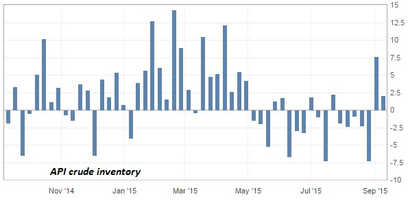 - American Petroleum Institute's (API) weekly report showed inventory surplus of 2.1 million barrels, which is second consecutive weekly rise.