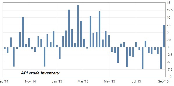 - American Petroleum Institute's (API) weekly report showed inventory surplus of 7.6 million barrels, which is fourth consecutive weekly drop.